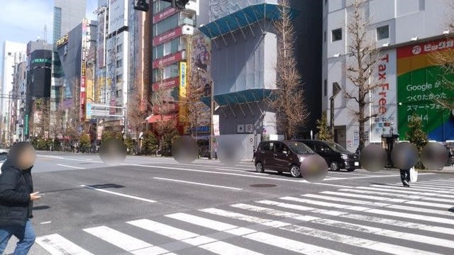 下記の写真は信号待ちの際に思わず、撮ってしまった写真ですが、日曜日のお昼ころ、秋葉原だけでなく、銀座などでも同じ様子。普段なら人ばかりだけど・・・。