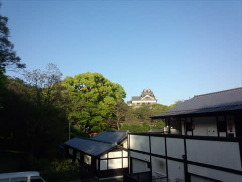 入り口から熊本城!?じゃないかも知れませんが、何となくお城らしき建物と、帰りにくまモンを撮って退散しました。
