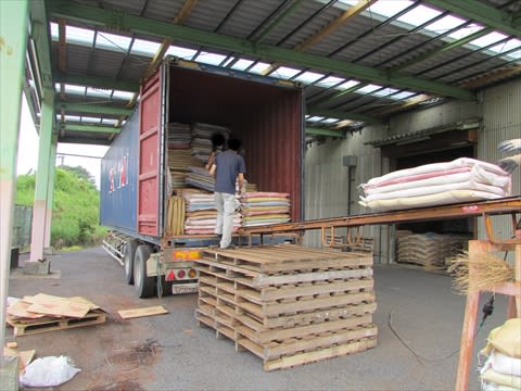 椰子中果皮って10Kg単位でプレスしてめいいっぱい積んでも40フィートのコンテナに12~3tしか積めないので、運送費がメチャメチャ高い!!