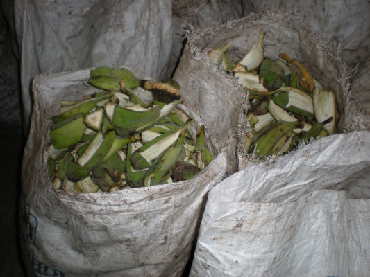 こんな感じのチップに加工するのがメインで、その際に発生するバナナの皮は、