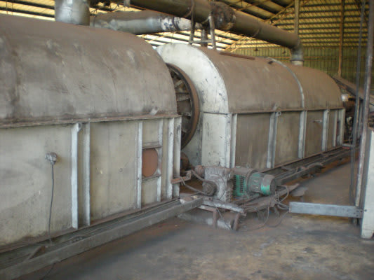 最初に訪問した工場では、椰子がらを乾燥・プレスしている機械を拝見させて頂きました。
