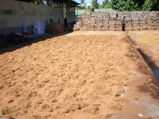ここの工場のメインの仕事は、バナナチップの加工をしていて、別棟でヤシの外皮および中果皮を加工している形のようでした。